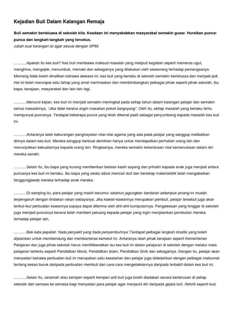 Karangan stpm menyediakan beberapa contoh karangan untuk dijadikan bahan . Kejadian kes buli secara tidak langsung telah menyukarkan mangsa untuk.